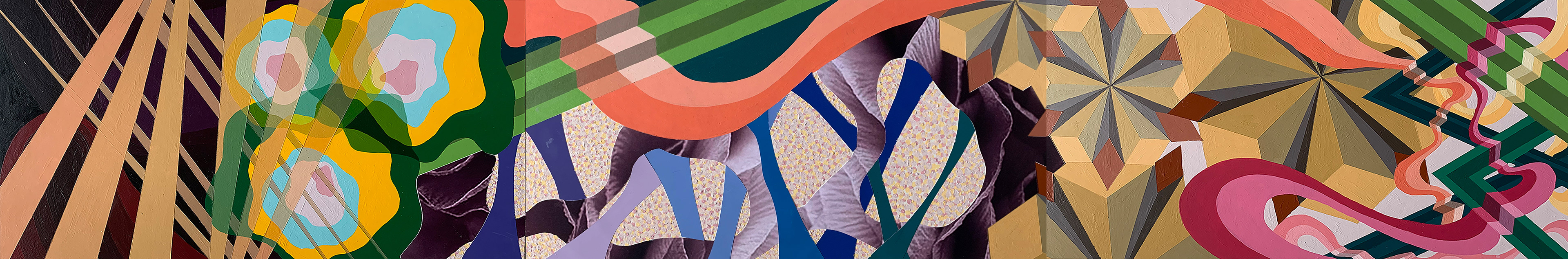 10x50 inch panorama made from 3 panels. Combines elements of color theory, transparency, space, and depth. The mediums are paint and collage on an illustration board.