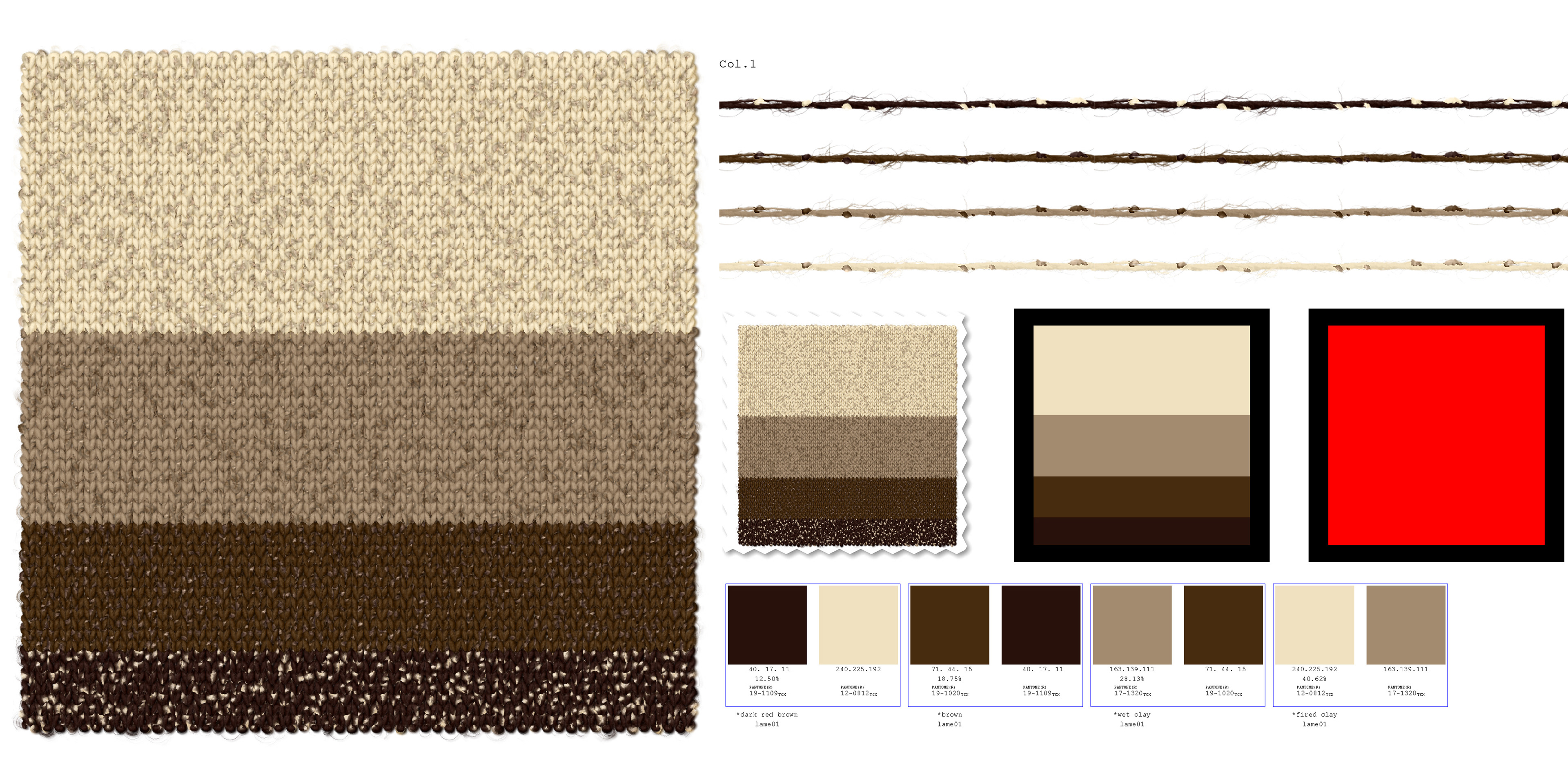 Knit swatches, knit garment illustrations, tech flats, and tech sheets.